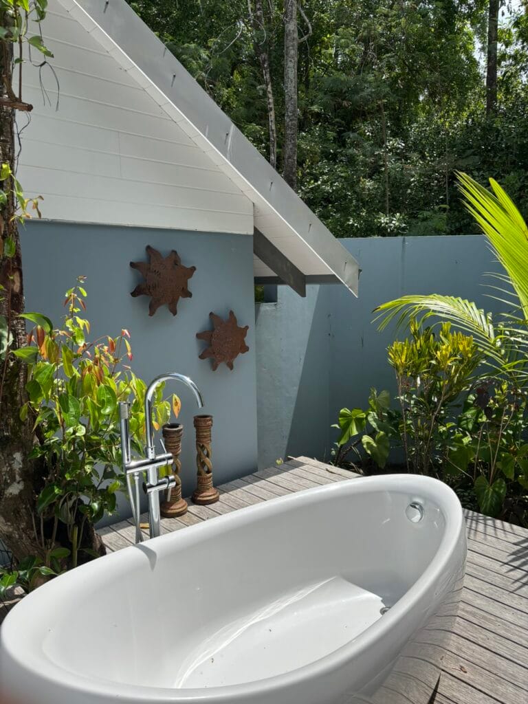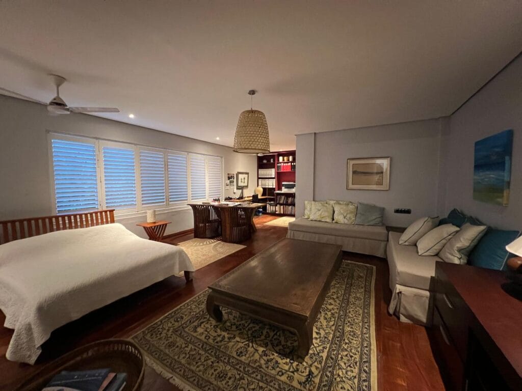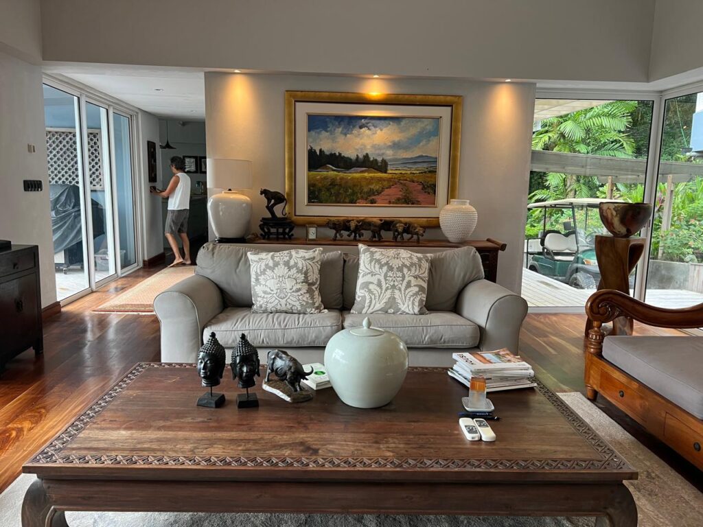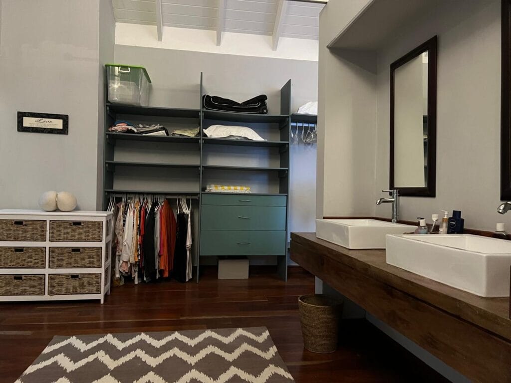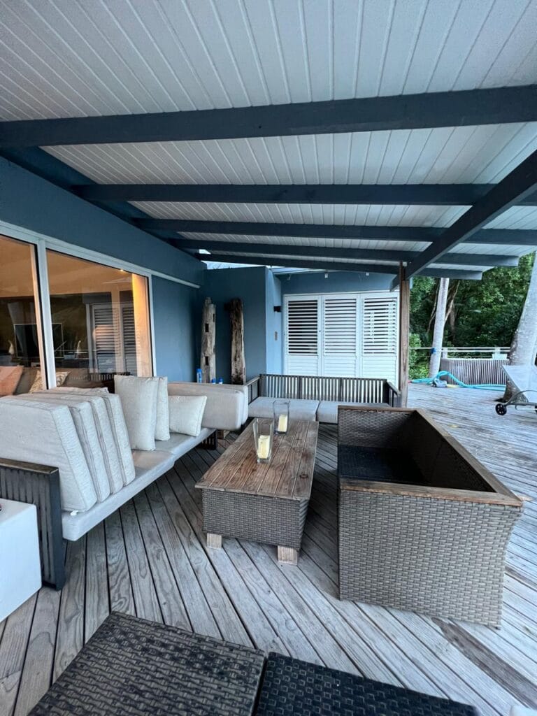 The residence is thoughtfully crafted with vaulted ceilings, adjustable shutters for natural ventilation, and premium Zambian Rosewood flooring. The outdoor areas feature Rhino wood decking, ensuring durability and a seamless connection with the island’s natural beauty.